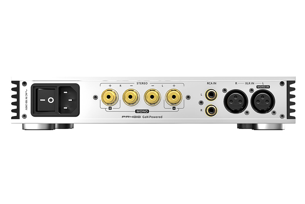XLR input mono mode, 2 units form stereo,power is increased by 4 times, and high power tolerant speakers are easily driven.