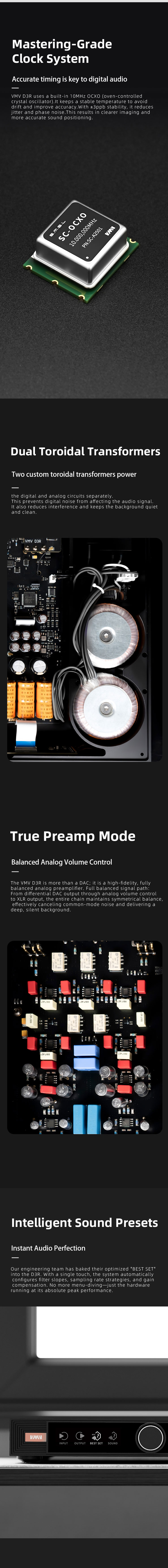 Built-in fully balanced analog volume control circuit supports true PRE-AMPfunction;